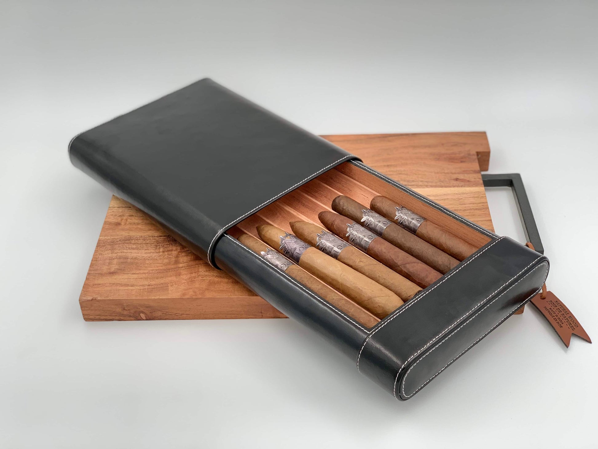 Comes with the (6) cigars (varied) of the month and a beautiful Black Leather Cigar Case.